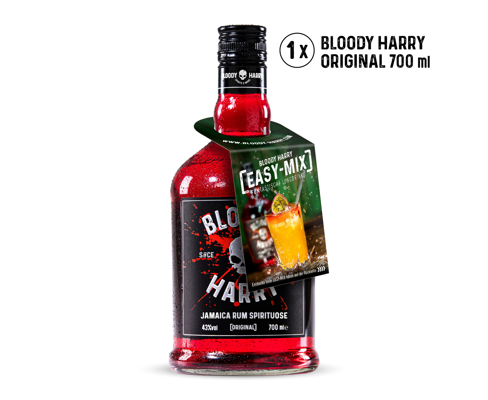 43% vol - Mit 30% Jamaica Rum und 70% Vodka in der BLOODY HARRY Signature-Bottle