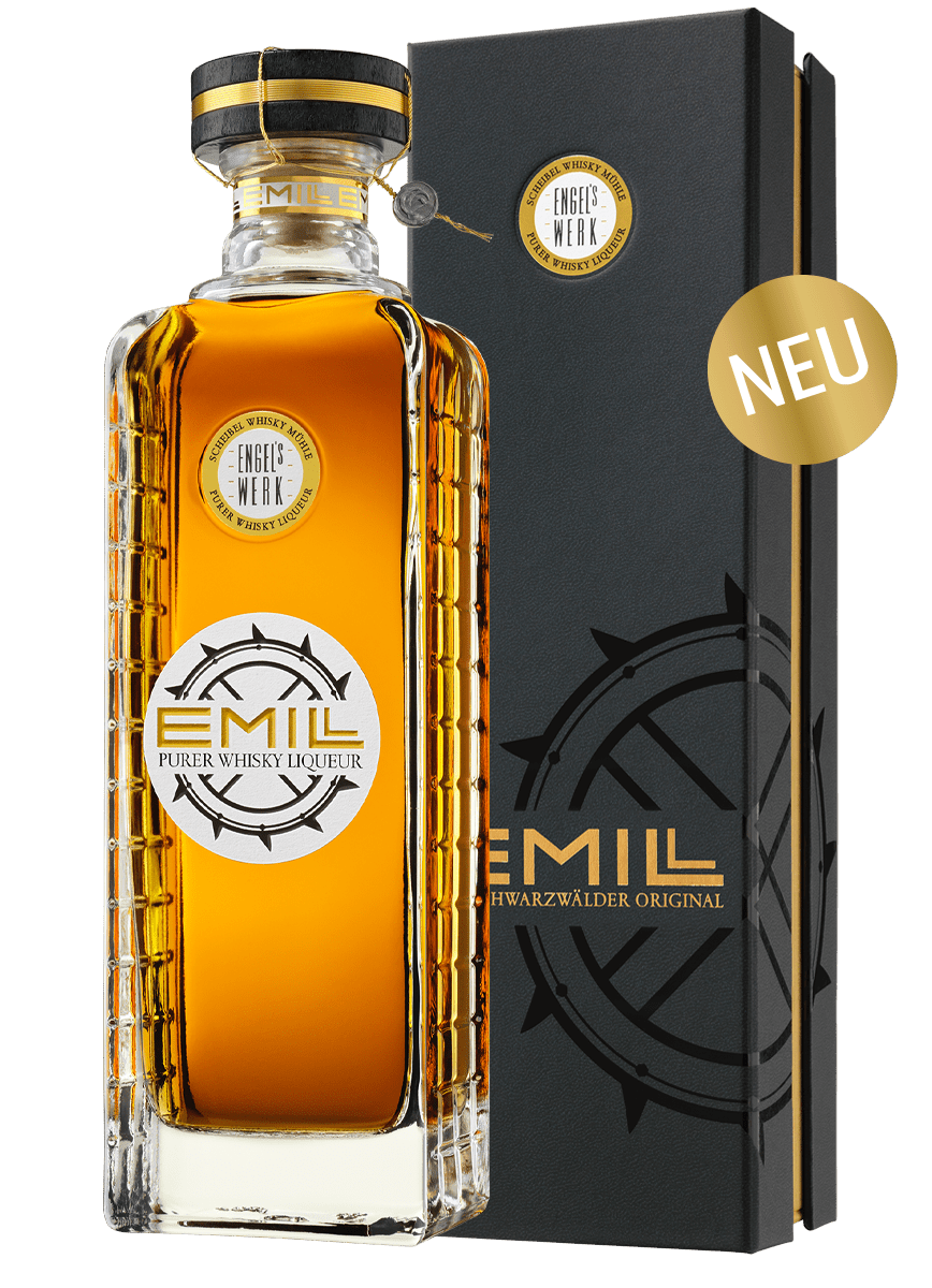 EMILL Engelswerk ist ein purer Whisky-Likör. Er ist ein echtes Schwarzwälder Original, gebrannt und gelagert in der historischen Scheibel Mühle in Kappelrodeck im Achertal. Ganz anders als bei Likören üblich, verzichten wir in der EMILL ENGELSWERK Rezeptur bewusst auf die Zugabe von weiteren Aromen oder Zutaten. ENGELSWERK ist eine Whisky-Cuvée, abgerundet zu einem puren Whisky-Likör.