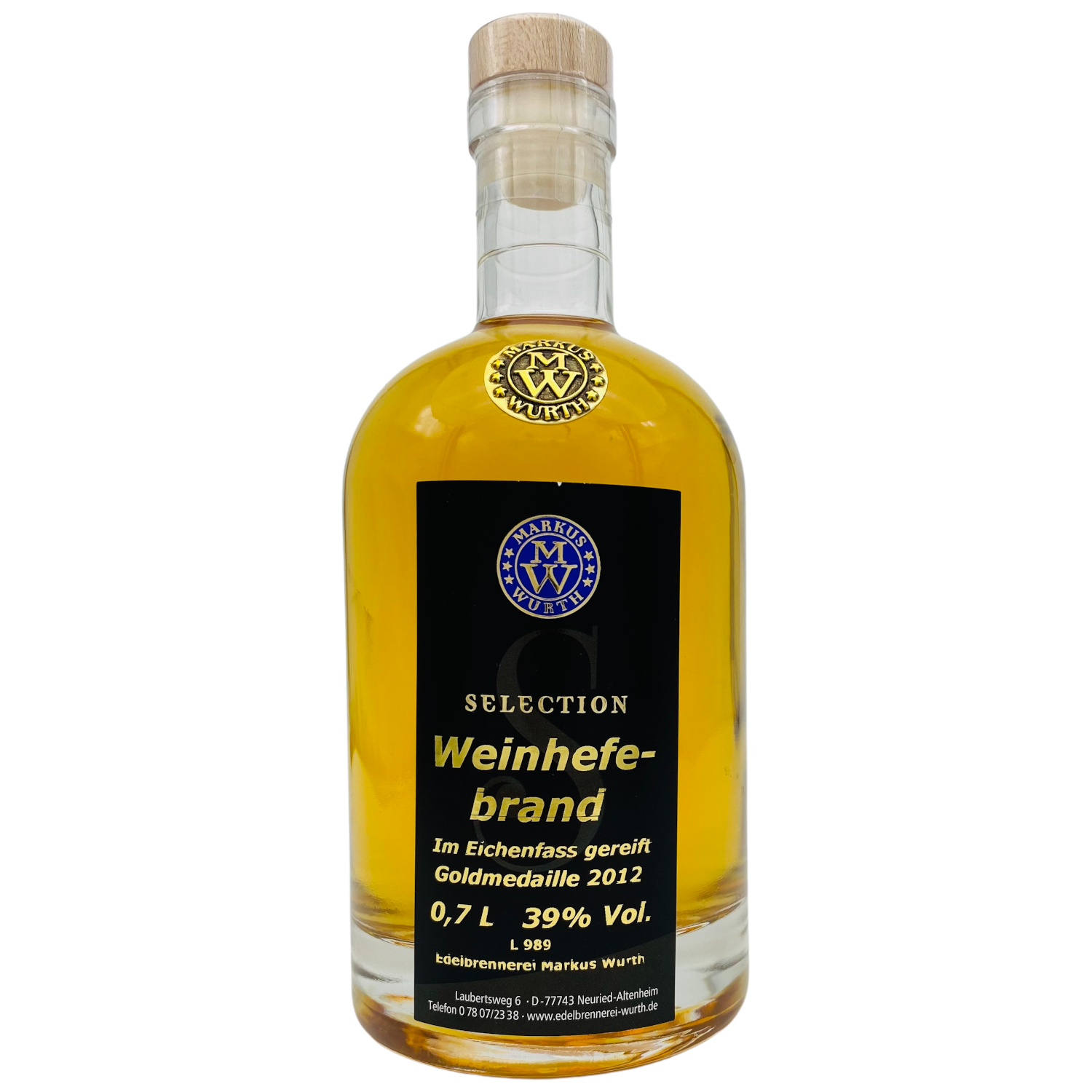 Produktinformationen "Wurth Weinhefebrand im Fass 39%vol."